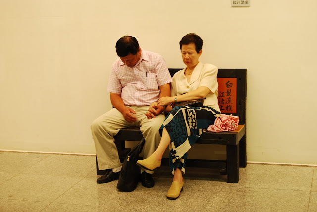 兩位主角在供人試坐的長椅上睡著,卻依然緊緊地把手牽住,鶼鰈情深,令人動容.